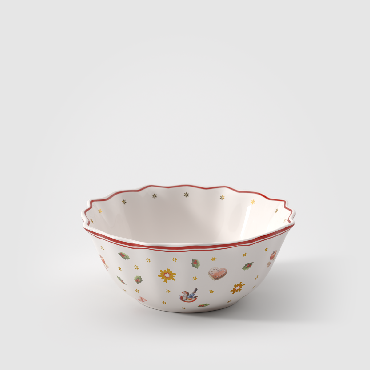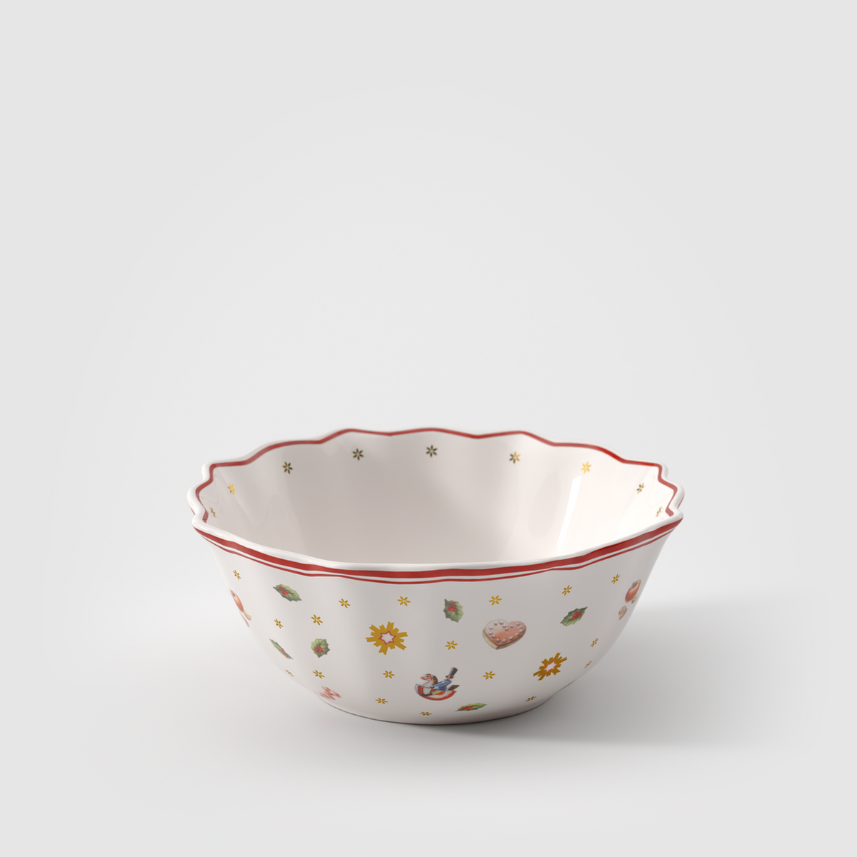 Create a nostalgic festive atmosphere in your home with the Christmassy Toy's Delight collection. The crockery is adorned with playful motifs in red, green and white and brings back childhood memories. To combine, collect and give. Serve delicious food in the bowl in a festive way, whether muesli for breakfast, biscuits during the day or dessert for Christmas dinner. Experience the magic in person.