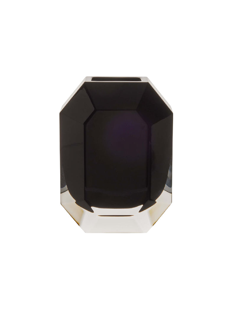 It is made from red crystal with cut angles and polished facets that capture and reflect light, producing a captivating play of reflections. Whether placed on a table, shelf, or windowsill, this vase adds a subtle sparkle to any space. The vase's sculptural form makes it Ideal for a single flower or a delicate bouquet since it blends modern geometry with timeless elegance.